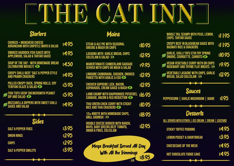 Experience food at its best at The Cat Inn of Egremont we are a community oriented pub that aims to bring back traditional cuisine and feel to english pubs as we have loved and charished over the years.